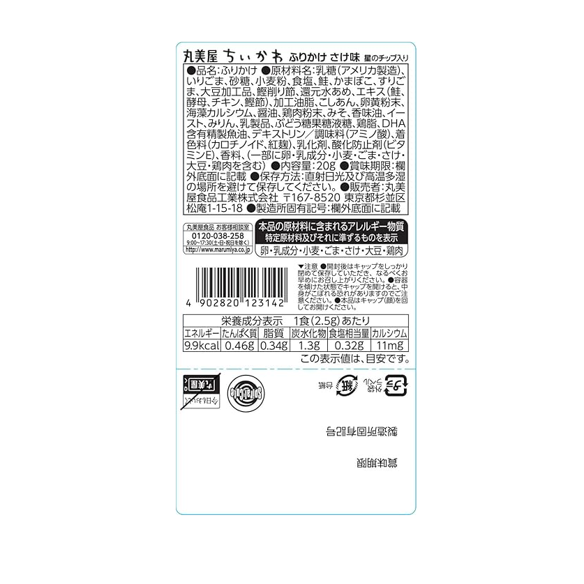 Ingredients: lactose (made in the usa), roasted sesame, sugar, wheat flour, salt, salmon, kamaboko (fish cake), ground sesame, soybean products, bonito shaved flakes, reduced syrup, extracts (salmon, yeast, chicken, bonito), processed oils, smooth red bean paste, egg yolk powder, seaweed calcium, soy sauce, chicken powder, miso, flavor oils, yeast, mirin, dairy products, glucose-fructose syrup, dha-containing refined fish oil, dextrin/seasoning (amino acids), coloring agents (carotenoids, red koji), emulsifiers, antioxidants (vitamin e), fragrance