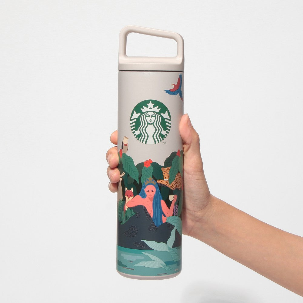 Ideal for hot and cold drinks, this illustrated bottle features Starbucks' famous siren surrounded by widlife.