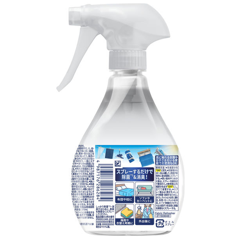 Febreze combines deodorizing agents with sterilizing ingredients similar to the acids found in fruits and vegetables. Safe for use on clothing that touches the skin and in homes with children. Can be used on bedding, pillows, sofas, carpets, during the rainy season, seasonal clothing changes, or after going outside.