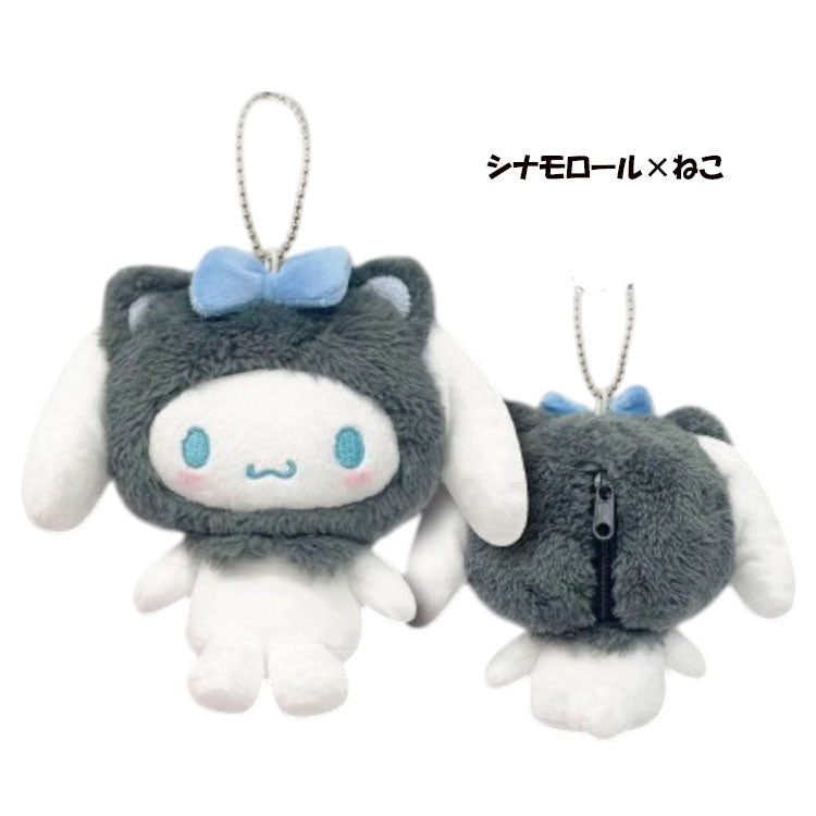 This cute plush keychain series features assorted Sanrio characters in animal costumes. The small zipper at the back can be opened to store small items. Use it to accessories your favorite bag.