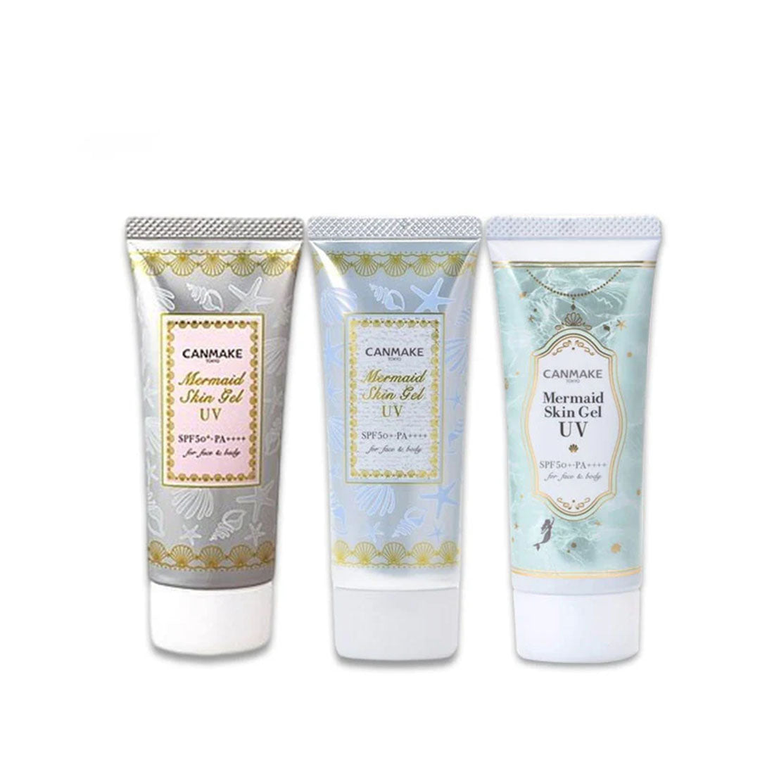 Enjoy skincare, color correction and UV protection with the super handy Mermaid Skin Gel UV by Canmake that is super popular on social media! This UV gel offers the maximum protection at SPF50+ PA++++ while also having a moist yet light feel.