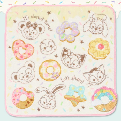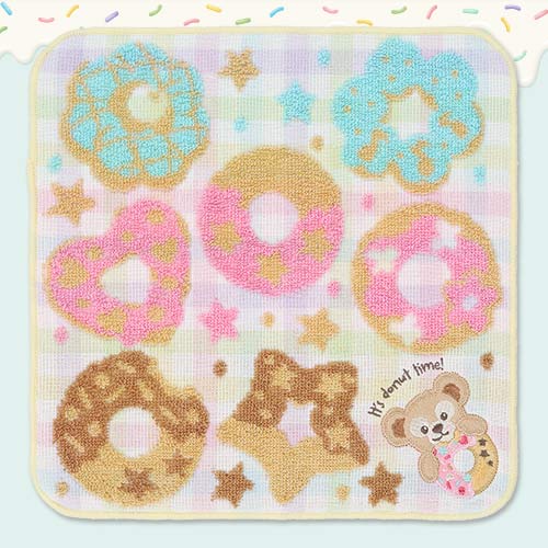 This set of two minature towels features a motif from Disney's Duffy & Friends Donut Festival of Joy collction, with an all-over donut print and characters from Duffy & Friends. Perfect for wiping leftover crumbs after a donut binge session. The pastel colors and variety of donuts are a feast for the eyes!