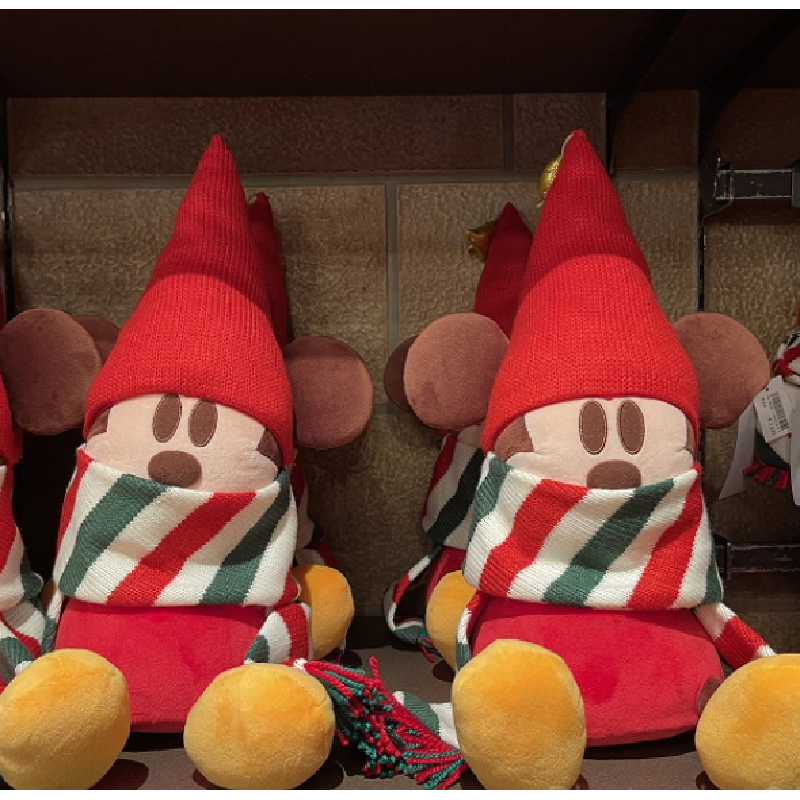 Celebrate the holiday season with a cute Mickey Mouse plush! He's bundled up in a candy cane scarf!