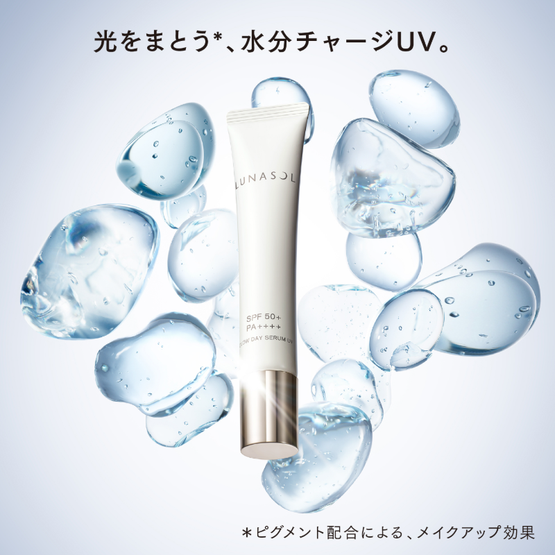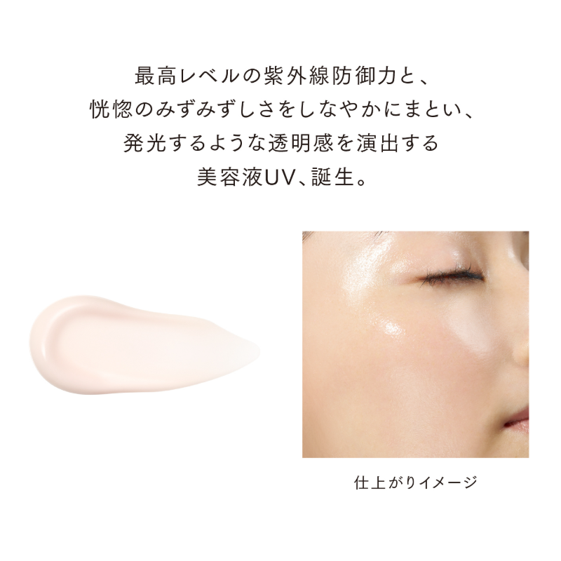 A serum-like UV protector with SPF50+ and PA++++ that offers the highest level of sun defense while delivering a luxurious, dewy finish. Developed with proprietary lamellar emulsification technology, it forms a moisture-charging film that adheres closely to the skin, continuously hydrating and promoting a smooth, firm complexion. Infused with delicate pink pigments, it enhances the skin’s clarity and imparts a luminous, radiant glow. It can also be used as a makeup primer, maintaining hydration and a clear, dewy finish until makeup is removed.