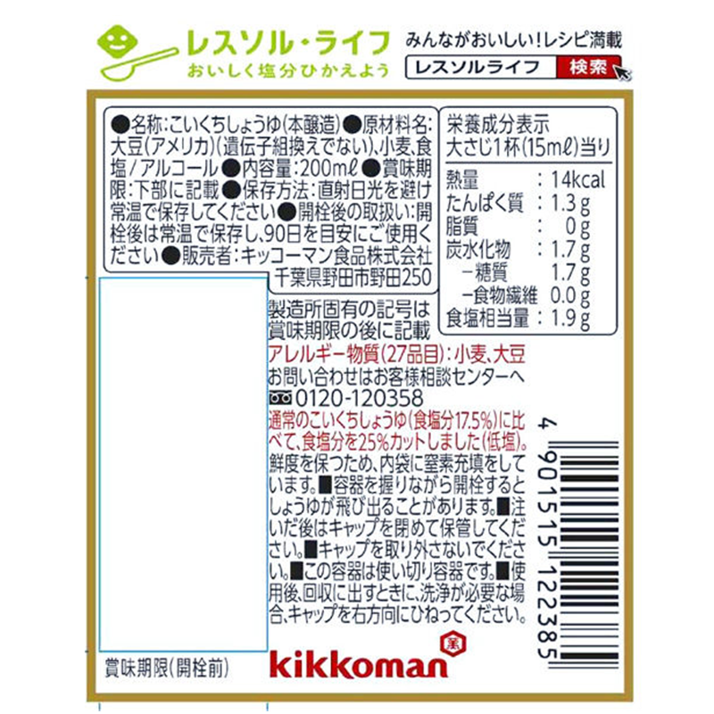 Kikkoman’s Reduced Sodium Soy Sauce is made with unpasteurized whole soybeans. Unlike conventional soy sauces, it is not heat-treated and contains 25% less sodium (which typically has a 17.5% salt content).
