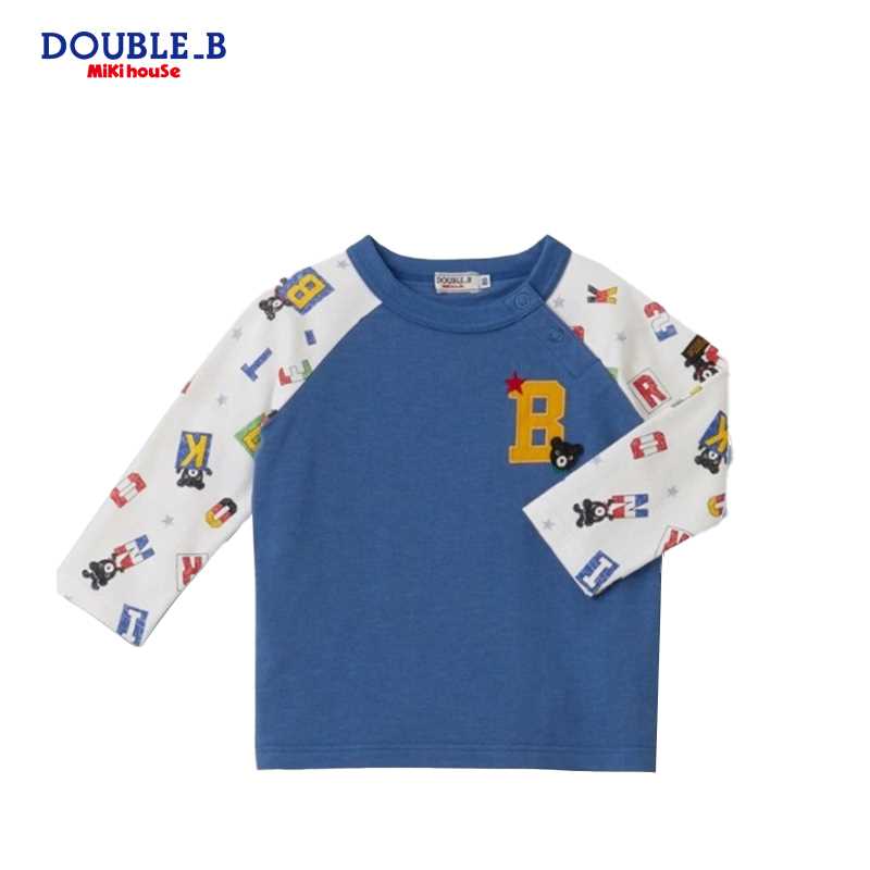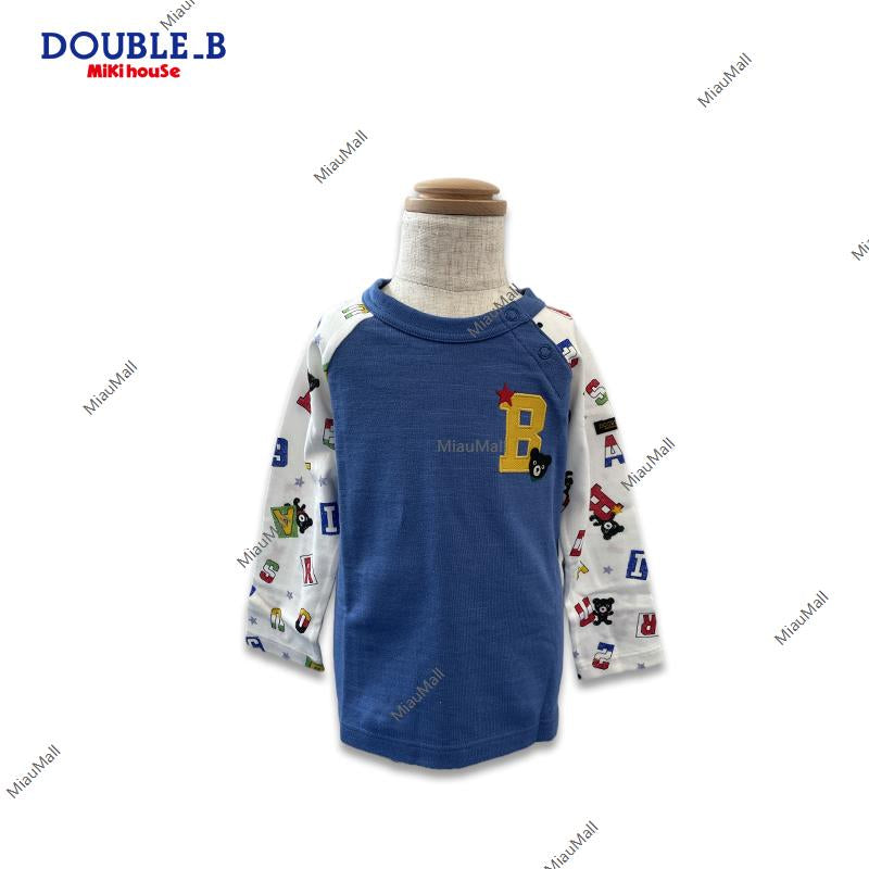 MIKI HOUSE DOUBLE-B 小黑熊 蓝白拼布T恤