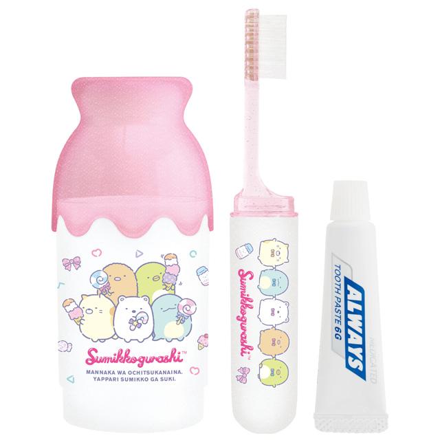 This cute Sumikko Gurashi toothbrush set is perfect for keeping your teeth clean on the go. It comes with a milk bottle-shaped case and cup that's easy to carry in your bag.