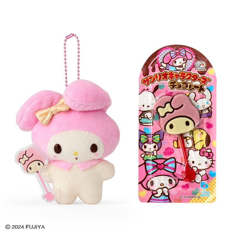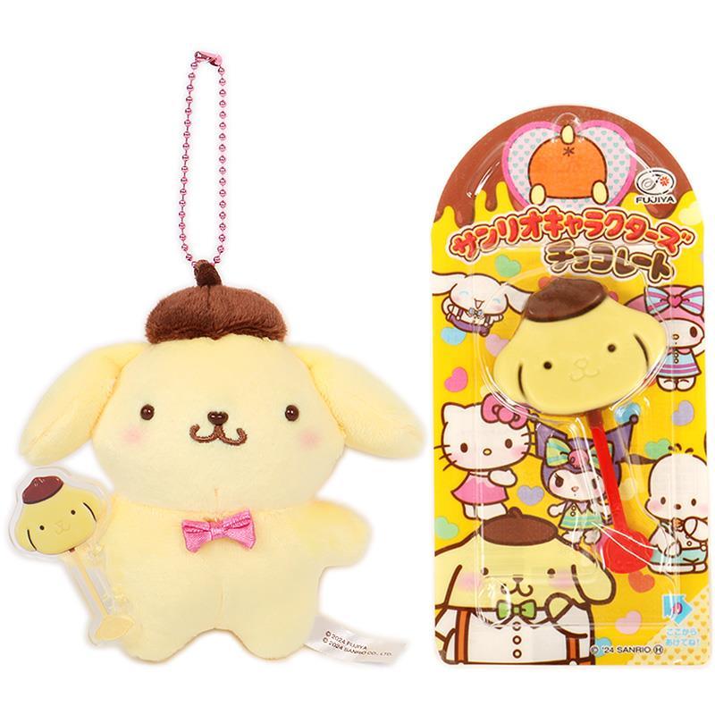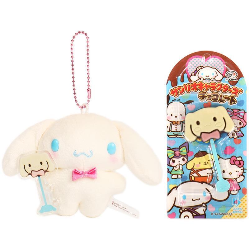 Sanrio Plush Keychain and Fujiya Chocolate Lollipop Set