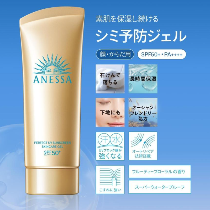 Anessa Perfect UV Skin Care Gel NA (90g) – Fruity Floral Scent, SPF50+, PA++++ (for face and body).